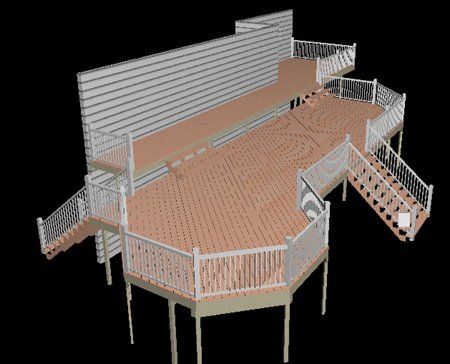 Deck designs are as numerous as there are ideas! We have provided a sample of one deck in a 3D design. Ask one of our designers to design yours!